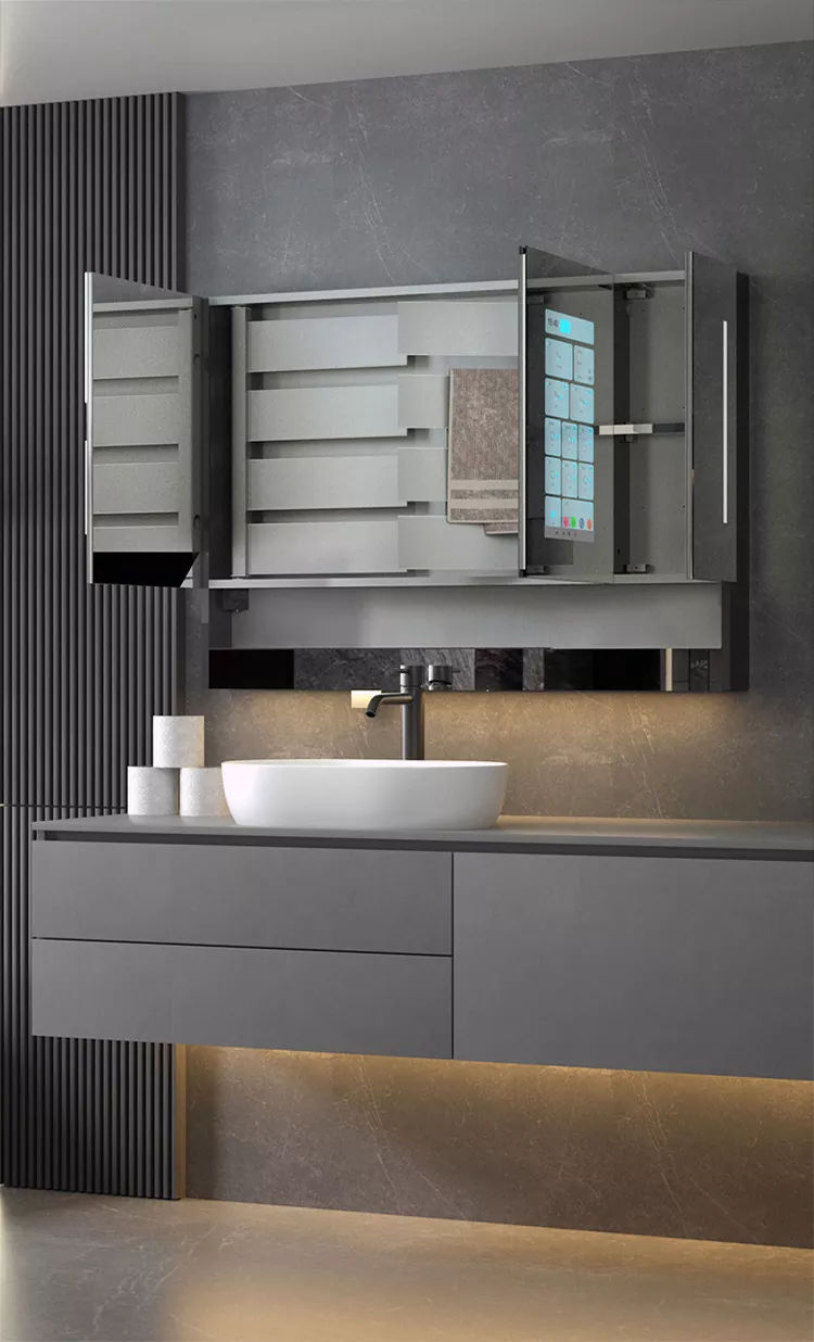 • Grafeno intelektualiosios vonios veidrodžio spintelėGrafeno intelektualiosios vonios veidrodžio spintelė